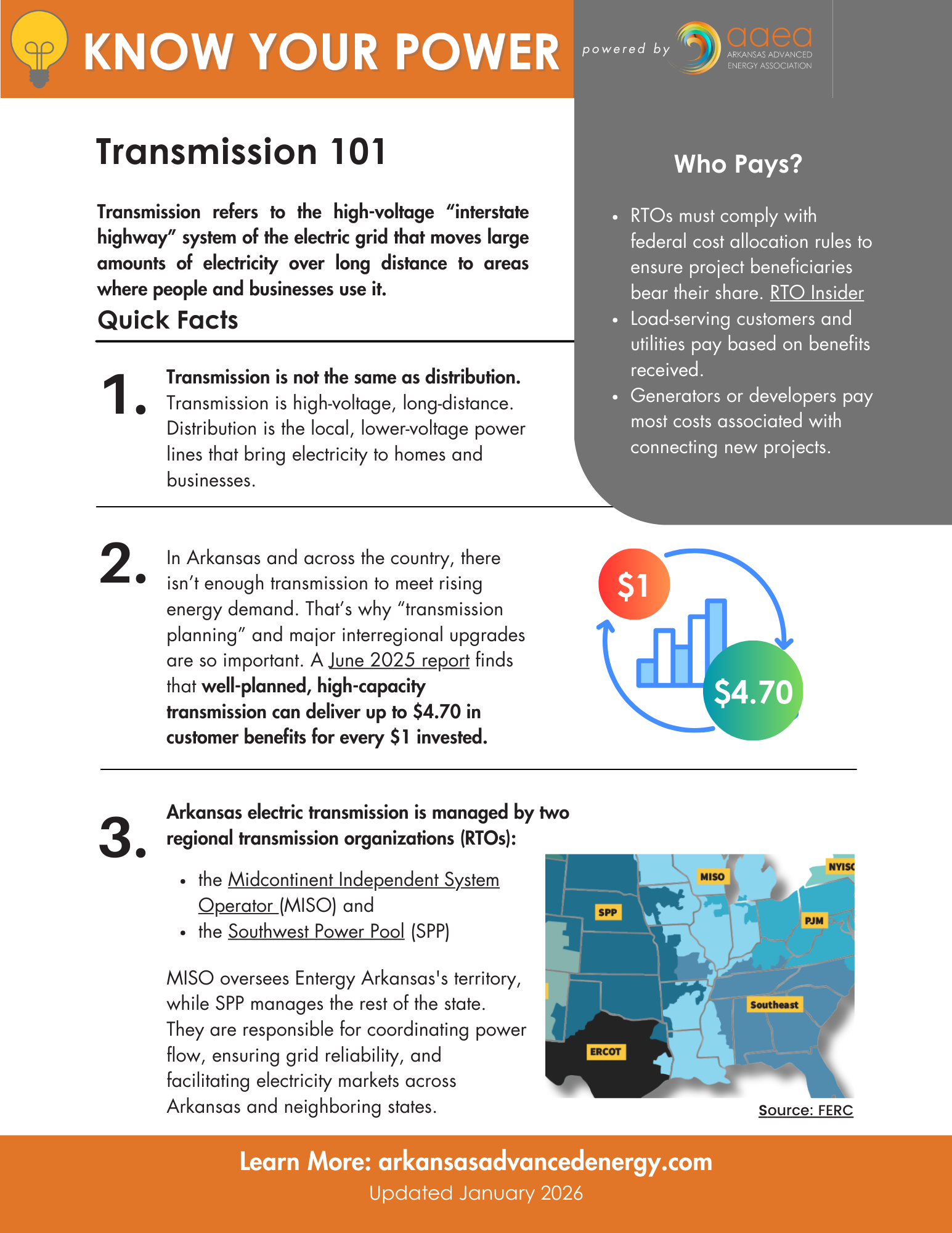 In Arkansas and across the country, there isn’t enough transmission to meet rising energy demand. That’s why “transmission planning” and major interregional upgrades are so important. A June 2025 report finds that well-planned, high-capacity transmission can deliver up to $4.70 in customer benefits for every $1 invested.